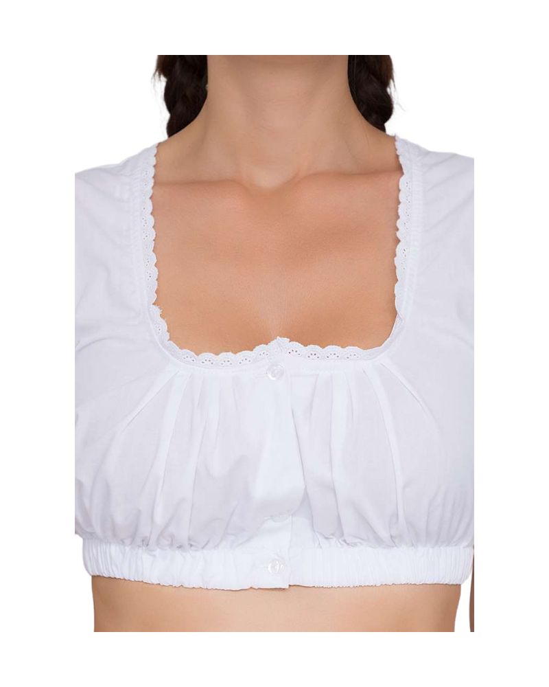 Every detail of the Greta blouse reflects authentic Alpine design traditions. The puff sleeves and balconette neckline are inspired by classic dirndl blouses worn in Bavarian celebrations for generations. The clean, crisp white tone symbolizes purity and tradition, making it a timeless addition to any dirndl wardrobe.