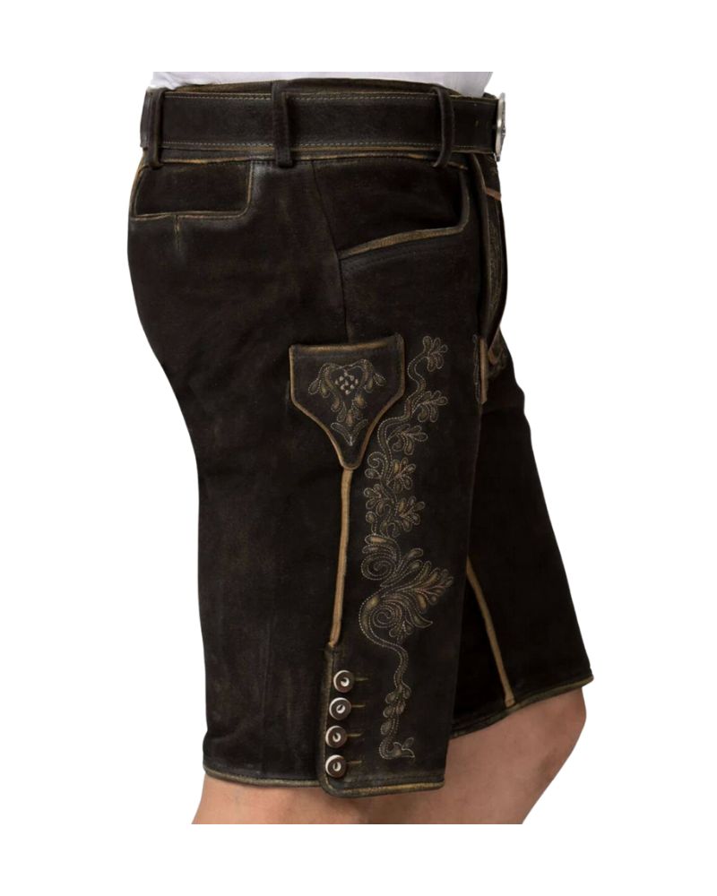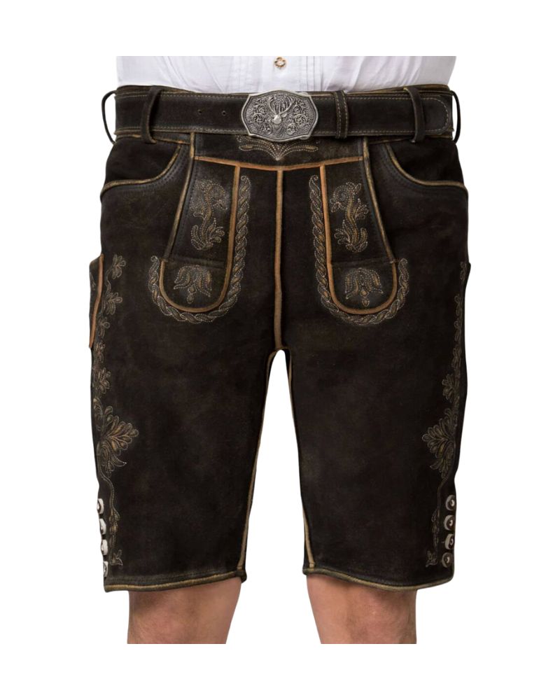 Discover the unmatched craftsmanship of Bamberg Nightfall Lederhosen, a true tribute to Bavarian heritage. Made from the finest premium goat suede leather, these lederhosen are designed to combine traditional aesthetics with modern comfort. The rich dark brown tone captures the timeless spirit of the Alpine countryside, offering an effortlessly sophisticated look perfect for Oktoberfest and beyond.