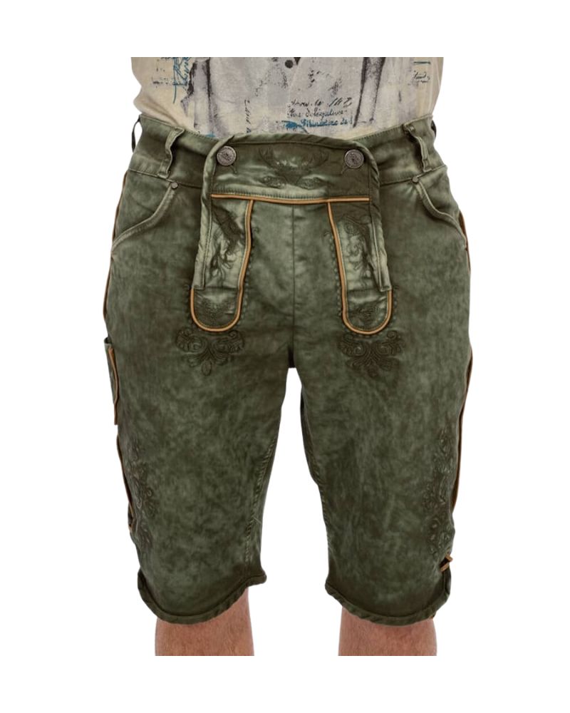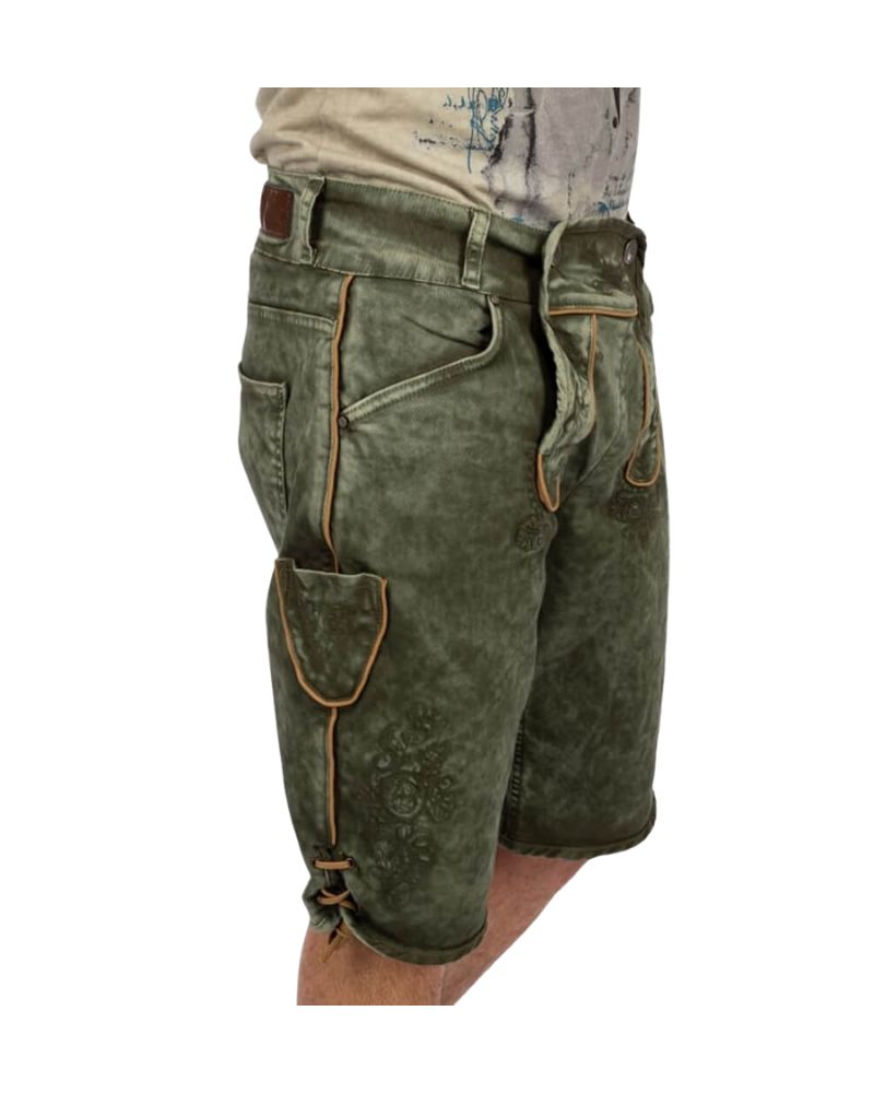 True to its Bavarian roots, this design features detailed embroidery that channels centuries of craftsmanship. Woven into the washed green denim, the pattern adds subtle texture and distinction—delivering a contemporary expression of alpine pride.