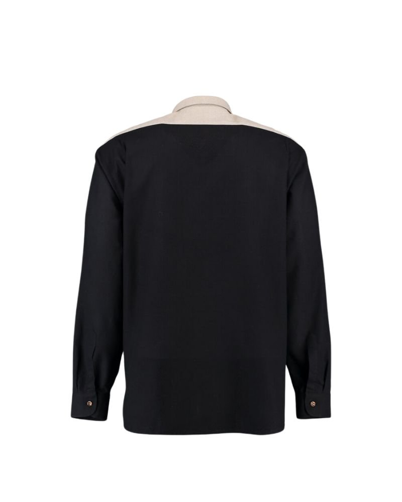 - Elegant black shirt with beige-trimmed collar and checkered lining