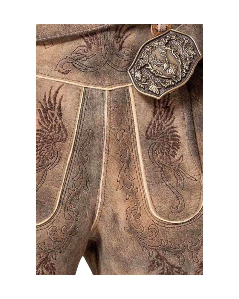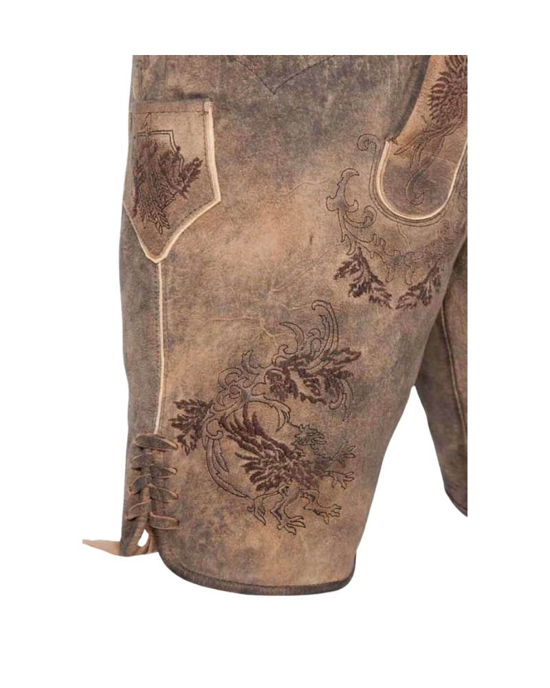 7 reviews for Tegernsee Ember Oak – Suede Lederhosen with Deep Brown Phoenix Embroidery