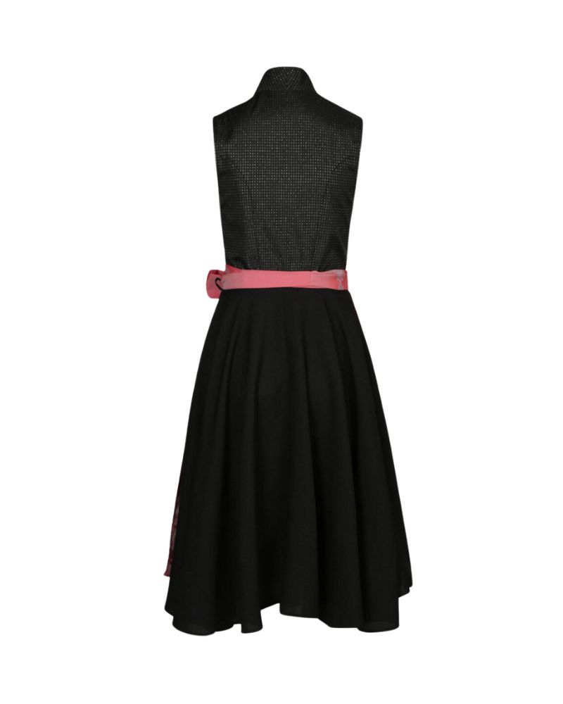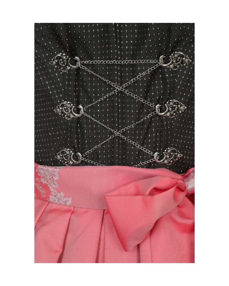The mid-length design of the Luisa Dirndl offers versatility and flow—ideal for dancing under the tents or walking through cobblestone festival streets. The rose pink apron, tied elegantly at the waist, softens the visual impact of the black dress while enhancing the feminine floral motif woven into the fabric. Whether you pair it with heels or traditional ballet flats, this dirndl never misses a step in style.