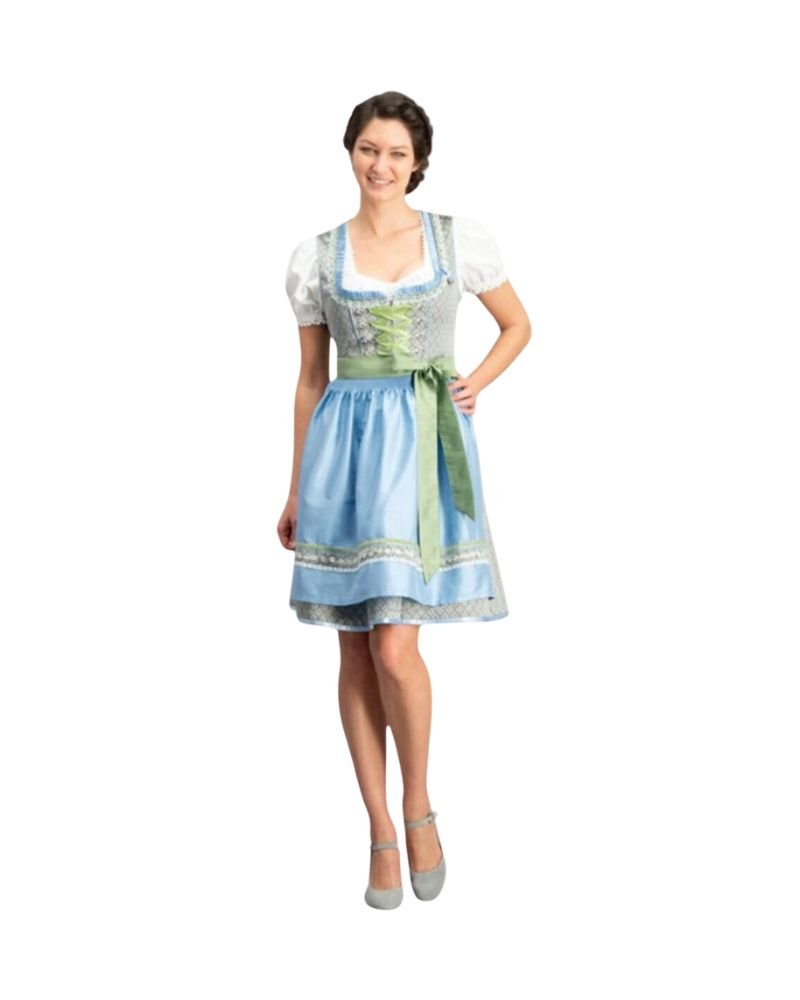 At German Attire, Explore our Cute & Playful Dirndl Collection for more pastel-themed designs that celebrate Alpine charm. For a similar style in a longer cut with elegant embroidery, discover the Therese Bubblegum Dirndl with Moss Apron—a perfect companion piece for pastel lovers.