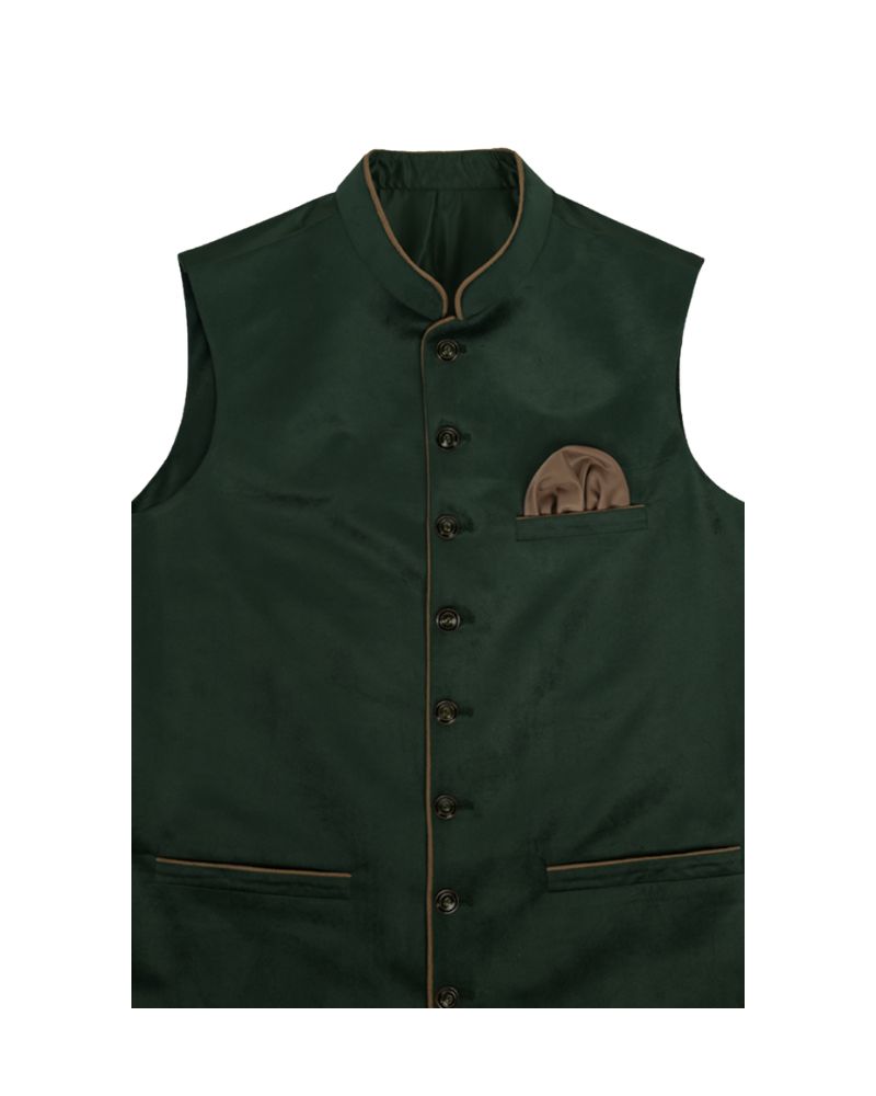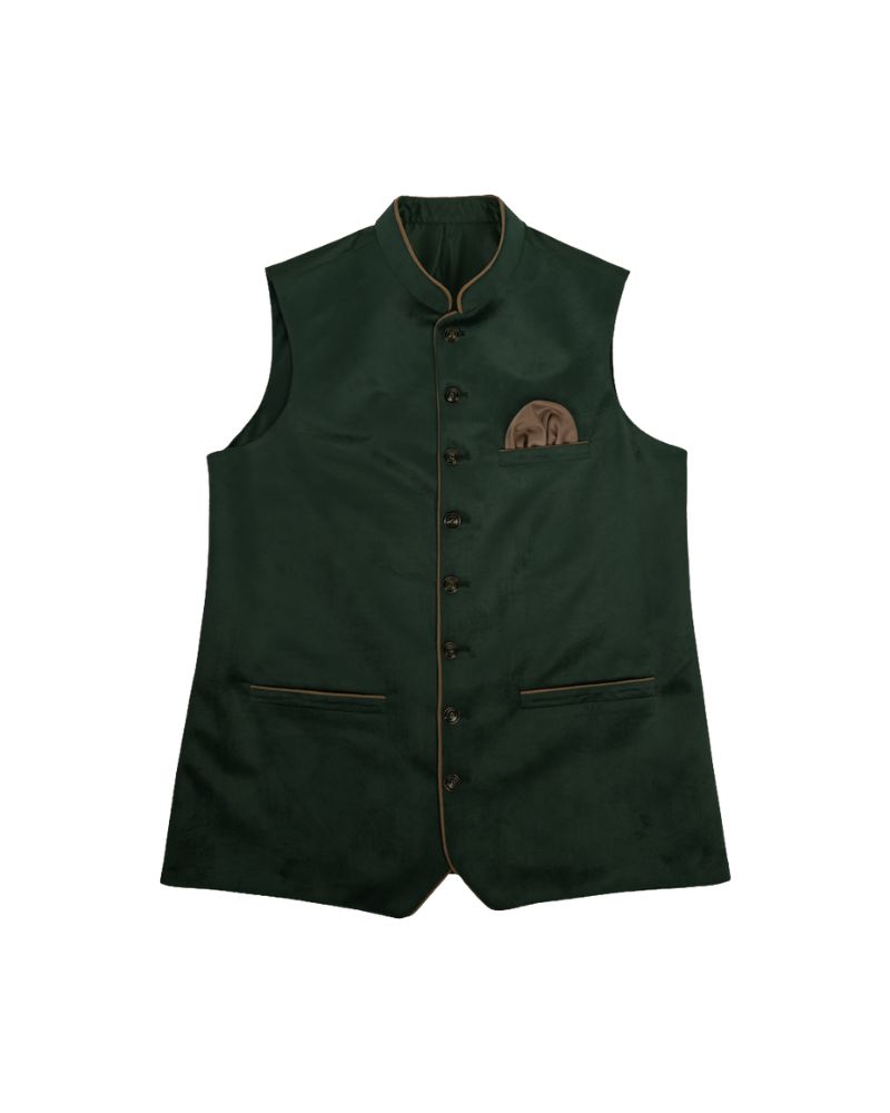 The green shade of this waistcoat is exactly what I was hoping for—deep, bold, and perfect for pairing with different shirt colors. The fit is very flattering and works especially well for taller builds. The craftsmanship of the buttons is impressive, they’re not only functional but add an elegant touch. I wore it to a cultural event and received multiple compliments on the traditional yet refined look.