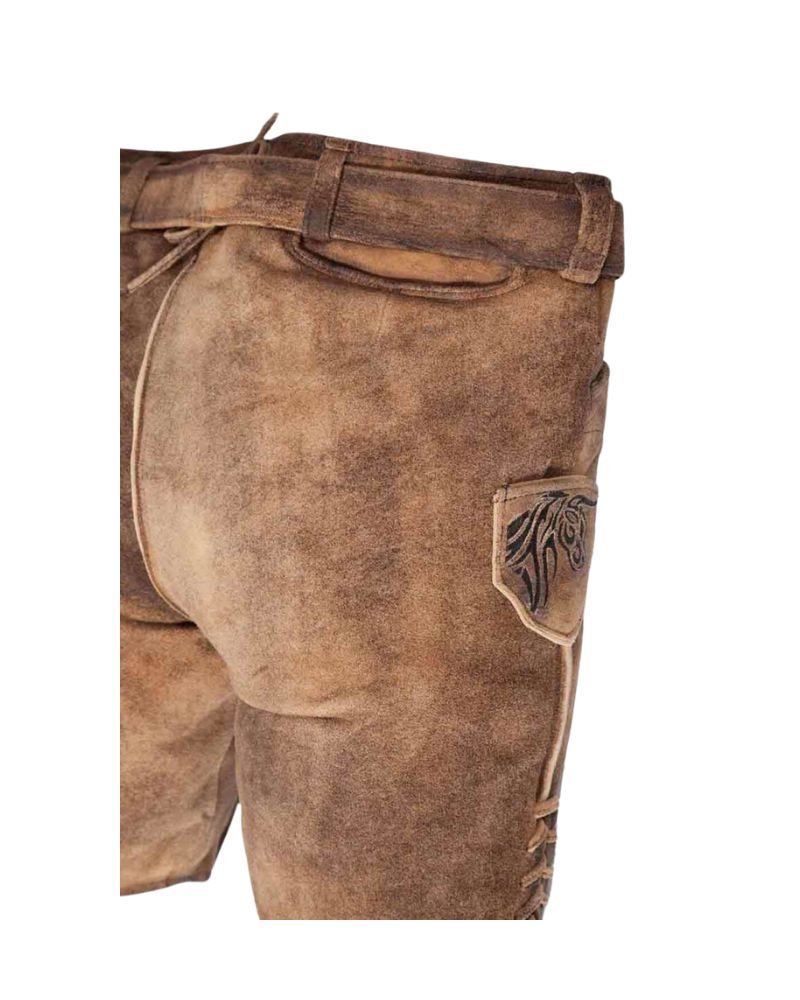 With a flexible waistband and finely tailored structure, the Norris Antique Saddle Lederhosen guarantees comfort and confidence with every step. Whether you’re dancing at Oktoberfest or walking the cobblestone streets of a Bavarian town, the relaxed fit adapts naturally to your movement. Over time, the leather conforms to your body shape, offering a personalized fit that no mass-produced garment can replicate.