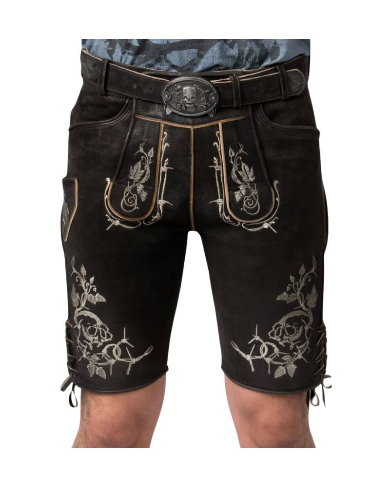 The Schwarzberg Hunter’s Embroidered Lederhosen is crafted from soft yet durable goat suede leather, offering both comfort and resilience for traditional wear. Its classic black shade stands as a strong backdrop for the embroidered details, creating a powerful and refined aesthetic. Ideal for men who want a timeless piece that speaks to both strength and heritage, this design seamlessly bridges rustic elegance with modern masculinity.