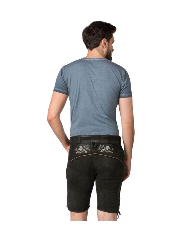 Schwarzberg Hunter’s Lederhosen – Black Suede Bavarian Shorts