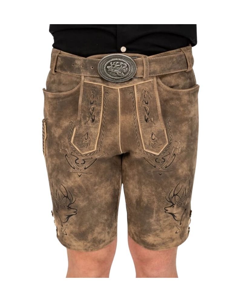 Matthias – Traditional Stag Embroidered Kurze Lederhosen